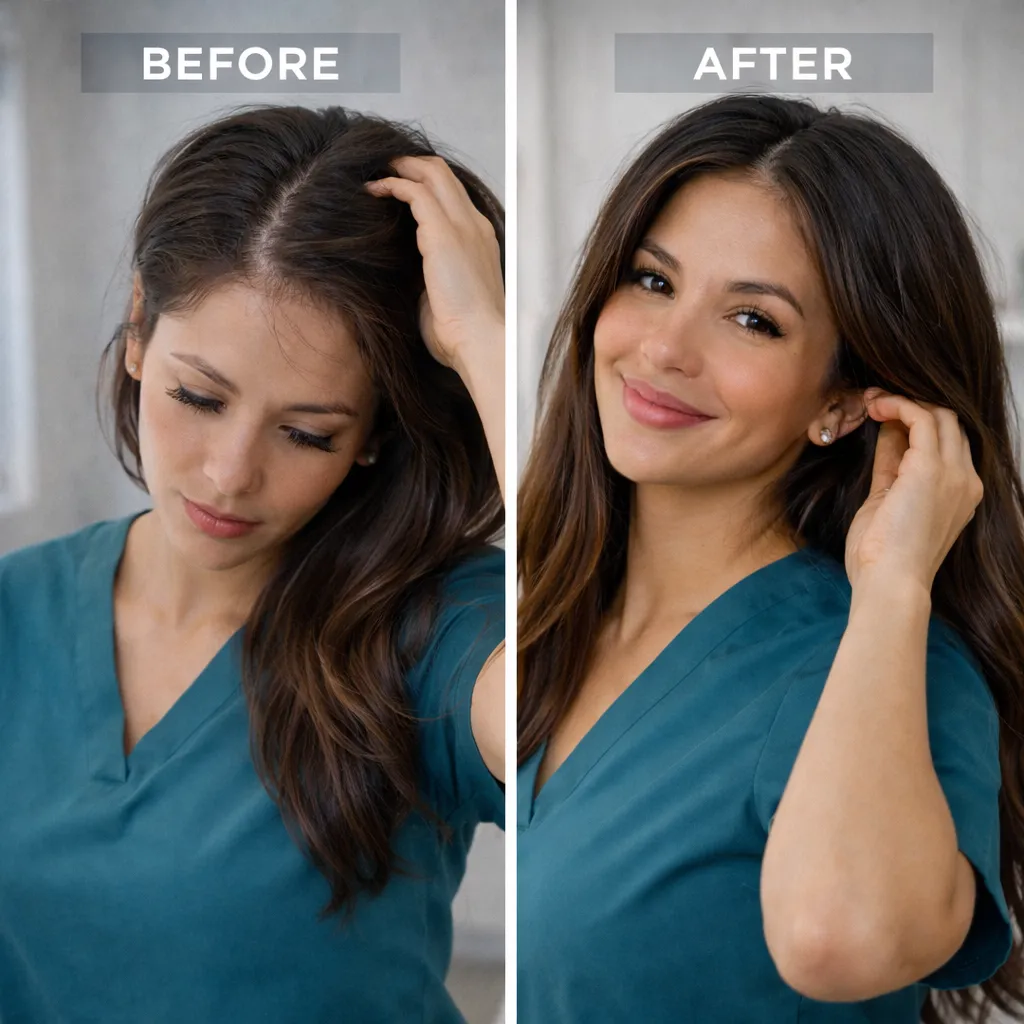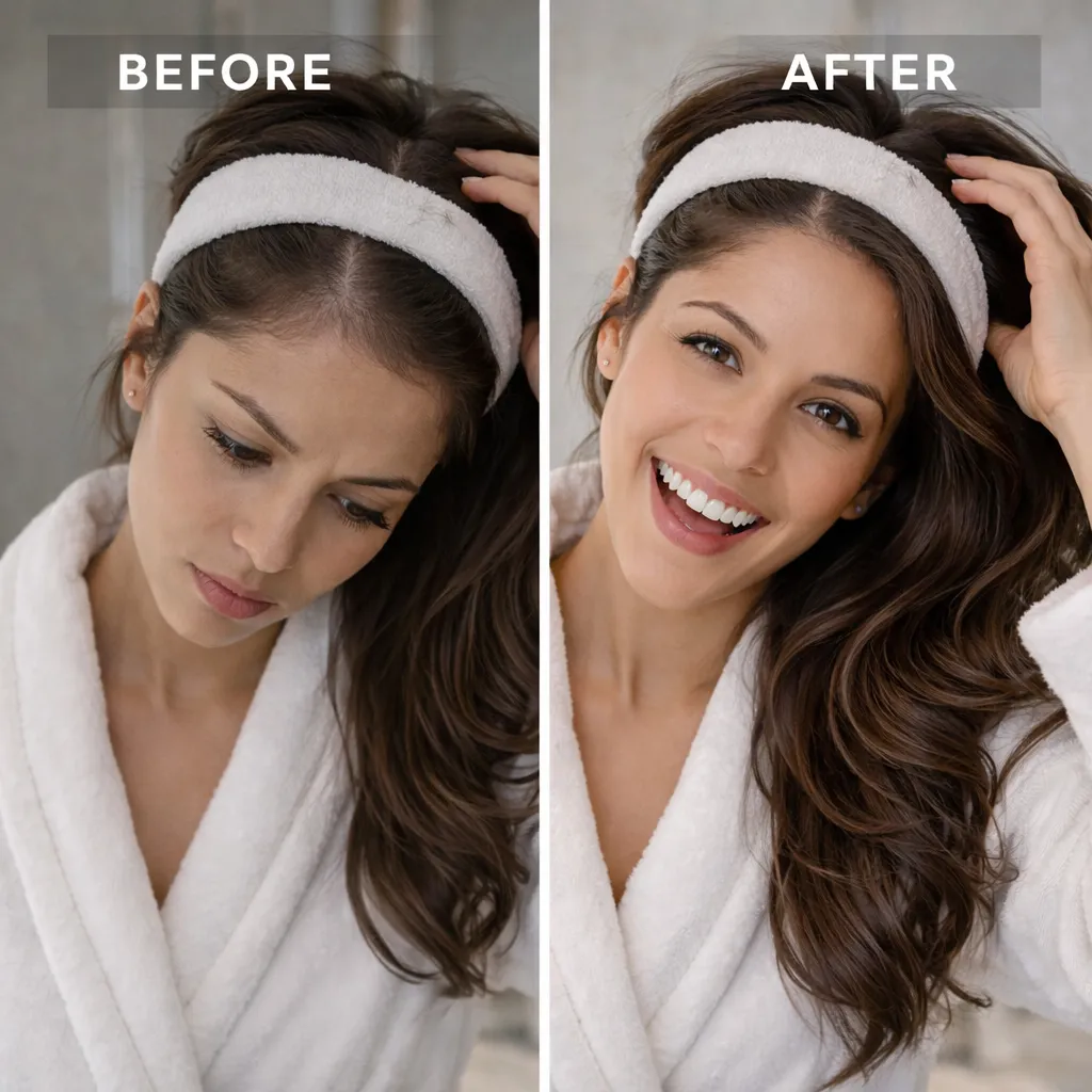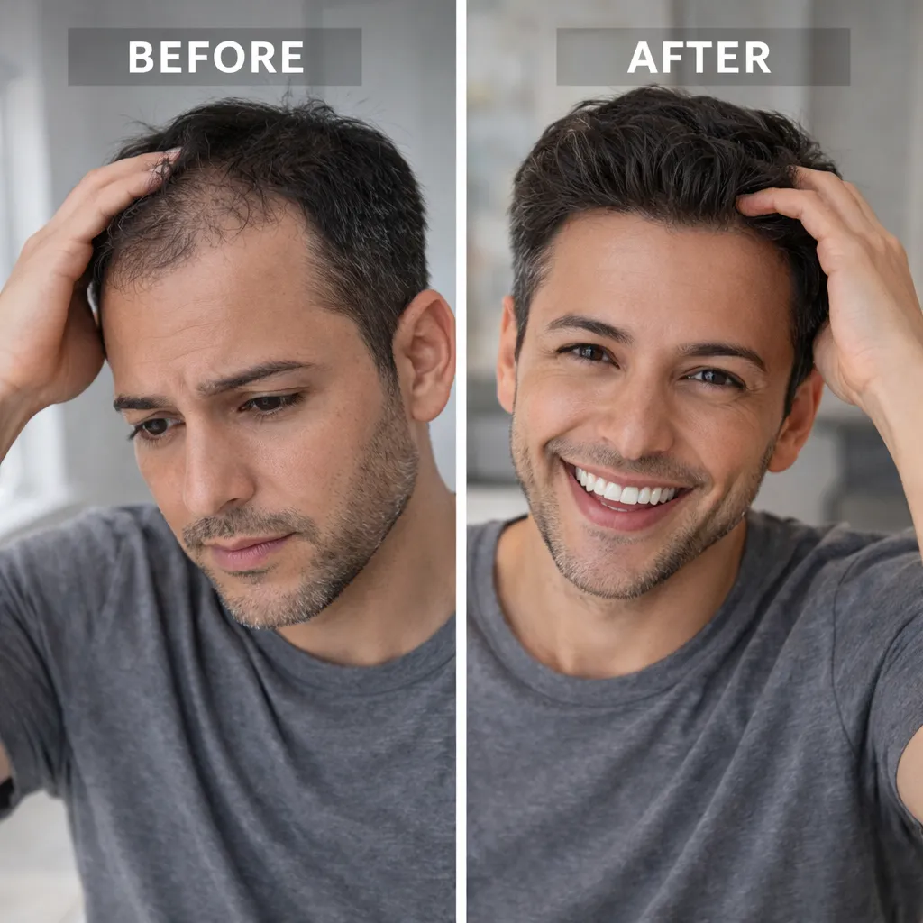 Every mirror. Every photo. Every time you style your hair. The thinning doesn't match how vibrant you feel inside. You've tried shampoos, supplements, even considered transplants. Nothing worked. You're done feeling self-conscious.
